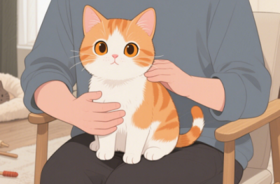 方式一我们先坐在椅子上,让猫咪坐在膝盖上,然后用一只手托住猫咪的胸部,并支撑住整个猫咪的身体,另一只手放在猫咪的头后方和背部之间。